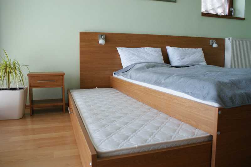 Štandartné ubytovanie pre dvoch hostí s možnosťou prístelky pre dieťa. Prístelka je posteľ vysúvajúca sa s pod postele s matracom šírky 80cm.